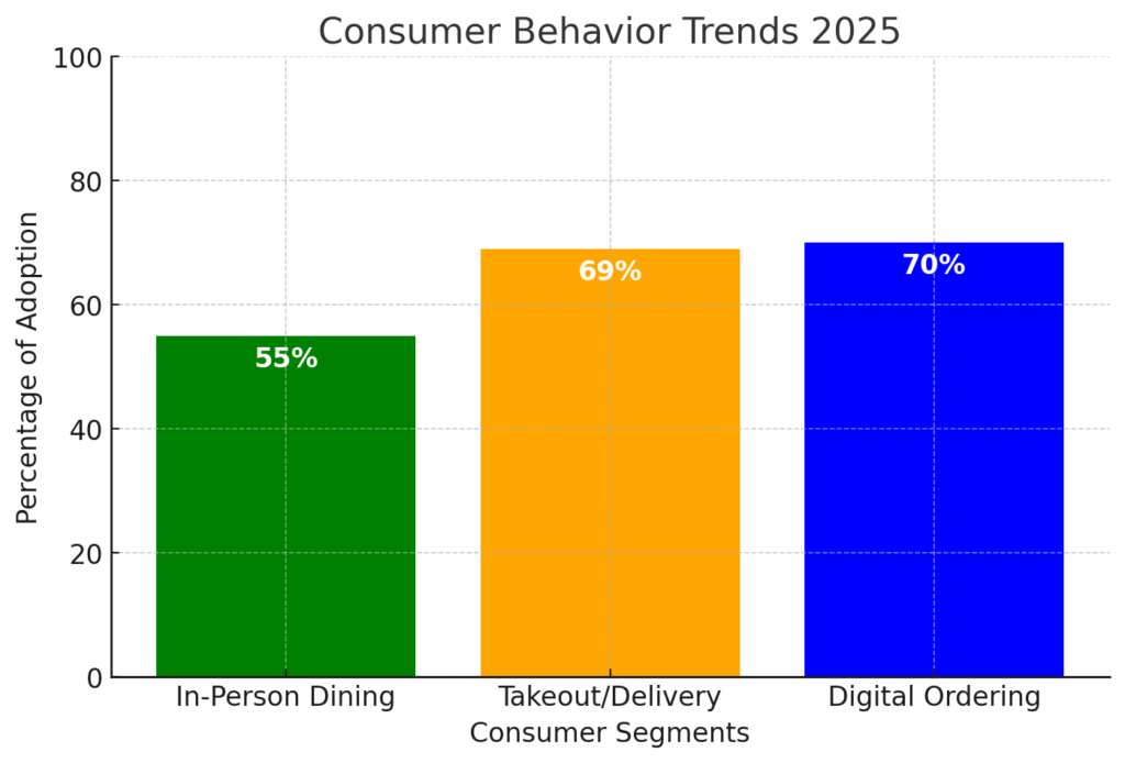 The shift in consumer preferences is unmistakable. Primarily, 55% of customers report their in-person dining frequency matches or exceeds pre-pandemic levels. Consequently, 69% maintain or have increased their takeout and delivery habits.