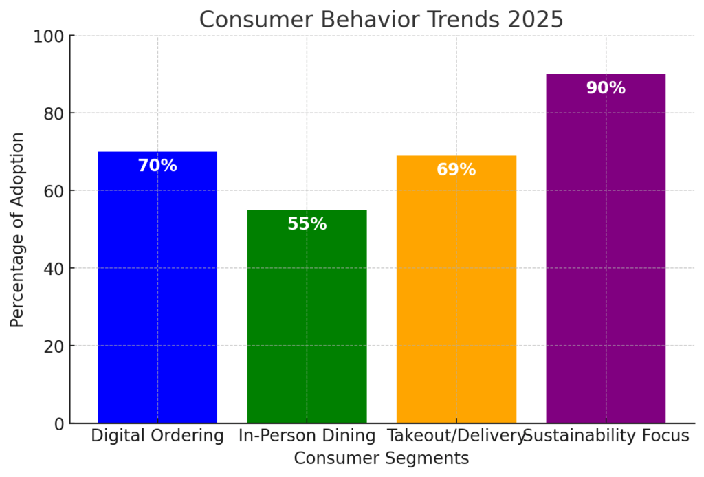 The industry is experiencing a notable shift toward sustainability, with over 90% of consumers seeking sustainable choices. This trend is reflected in restaurants’ operations, as 75% have adopted initiatives like waste tracking and eco-friendly packaging.