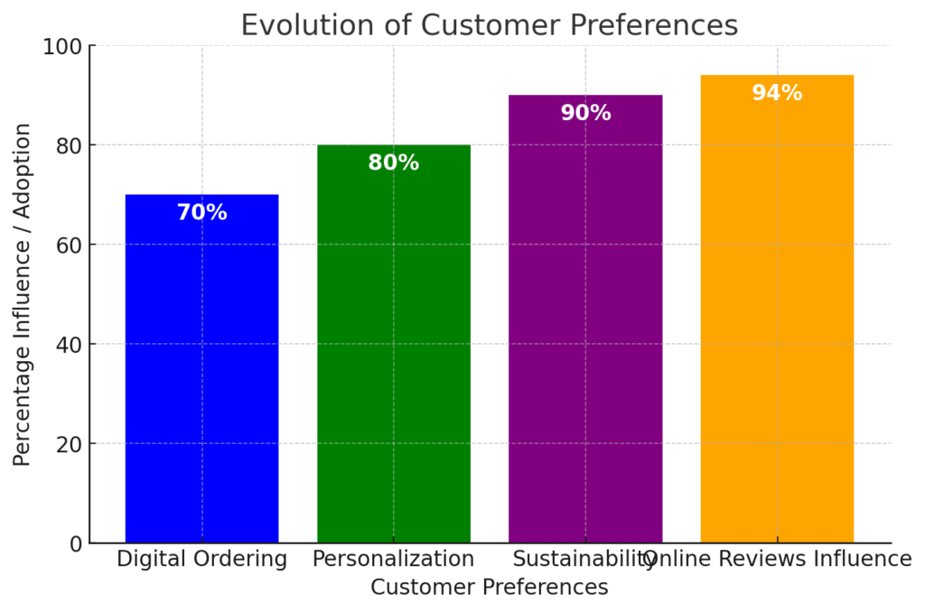 Traditional restaurant models are struggling due to rising operational costs and changing customer expectations. Modern diners now demand tech-savvy, personalized experiences, with 94% checking online reviews before visiting and an increasing preference for digital ordering and sustainability practices.