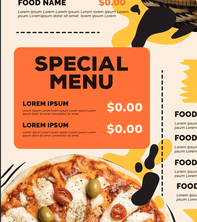 - Nestled pricing: Hide prices within or after descriptions to keep focus on the food rather than the cost